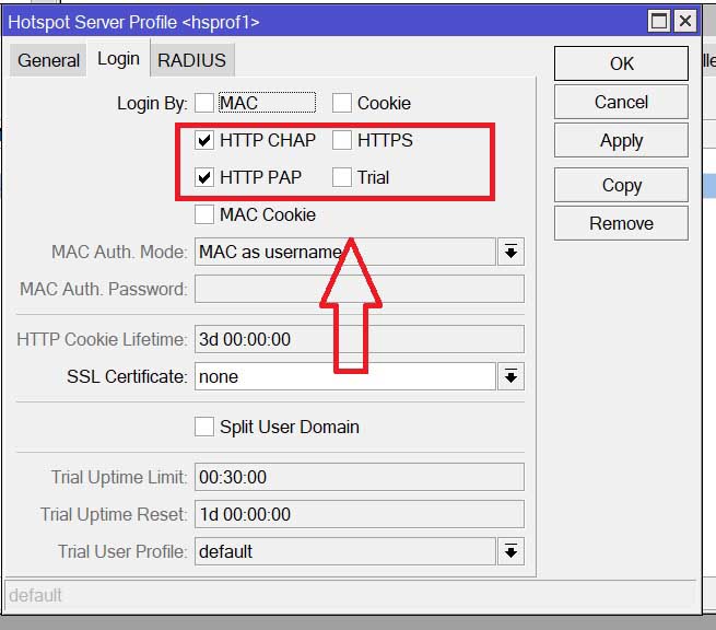 di IP => Hotspot => Server Profiles